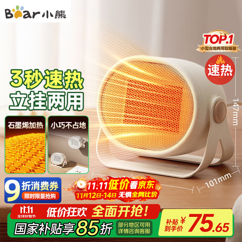 包邮 小熊(Bear)取暖器暖风机办公室电暖器家用电暖气小型电暖风迷你热风机学生桌面取暖电器卧室伴侣DNQ-C05A1